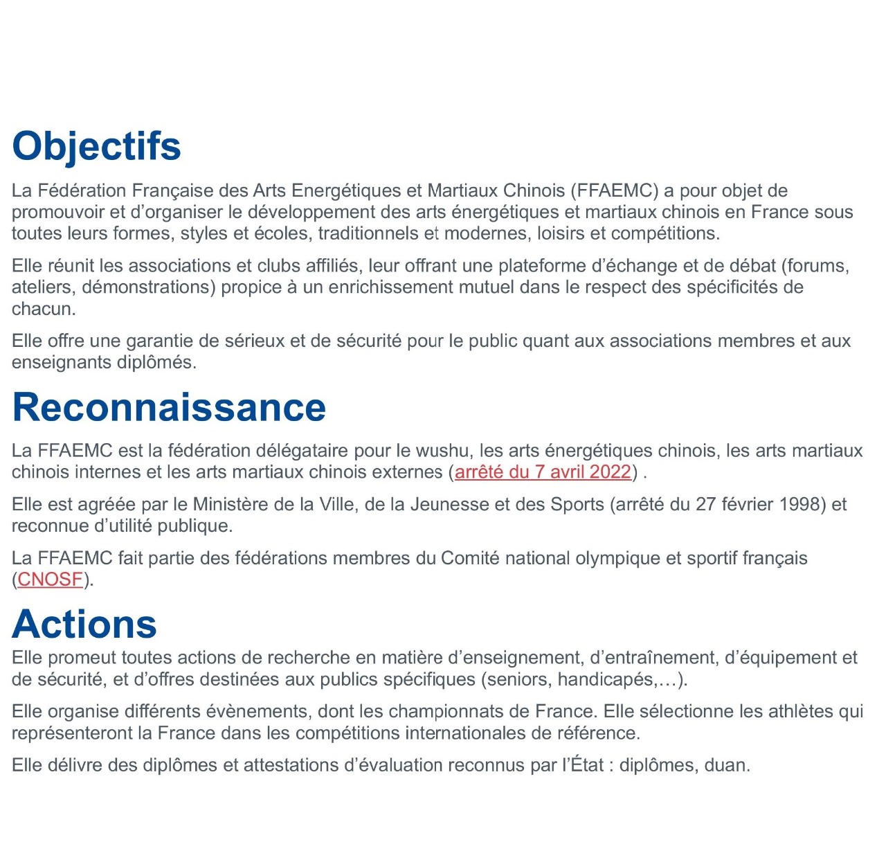 La Fédération des arts martiaux chinois